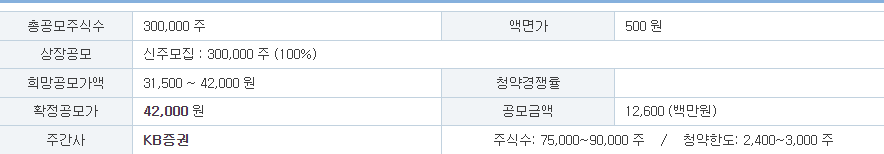 | 확정공모금액 | 4만 2000원 |