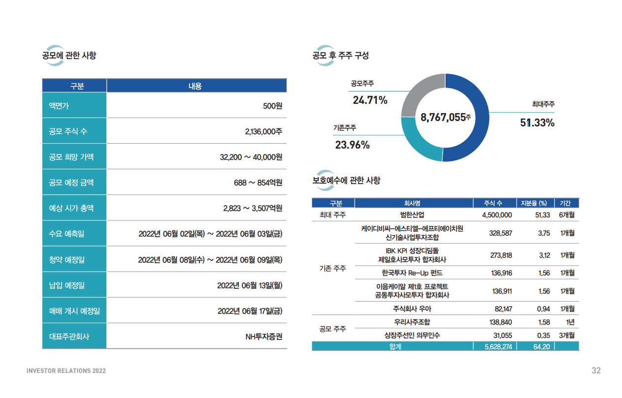 | 공모청약일 | 2022.06.08 ~ 2022.06.09 |
